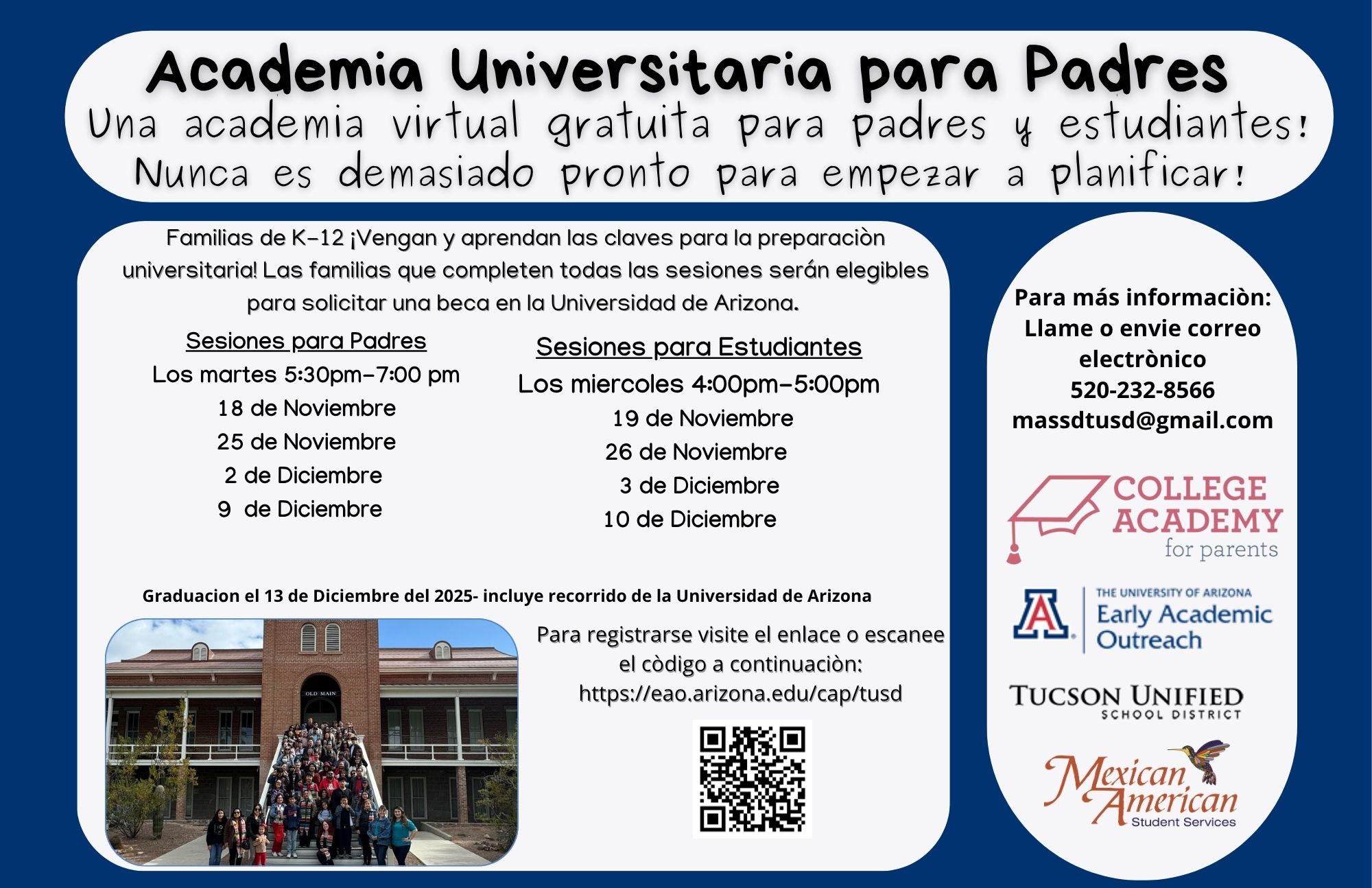 For more info call/ Para más información llame a 520-232-8566 or email: [email protected]
